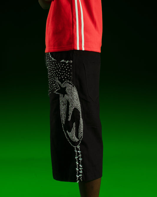 5200 X STREET SOUK BLACK DENIM RHINESTONE SHORTS