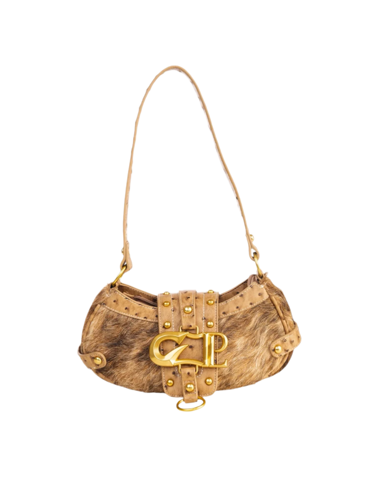Made of Cowhide detailed with Gold Hardware and Rivets